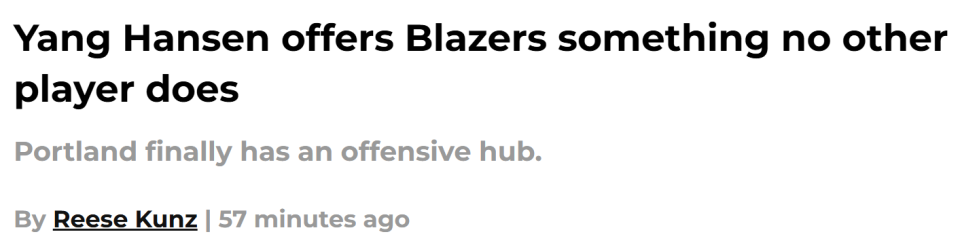 北京时间8月26日,开拓者队记Reese Kunz撰文指出,杨瀚森为开拓者队带来了其他球员都无法提供的独特价值,波特兰终于拥有了一个进攻枢纽。以下是Kunz的文章——